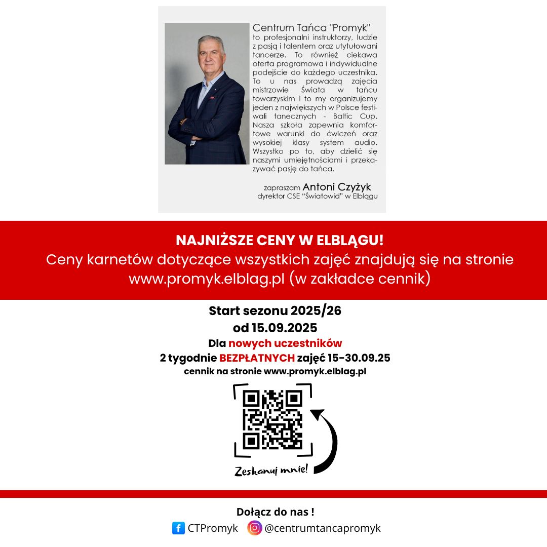 Centrum Tańca Promyk ma w swojej ofercie na nowy sezon 2025/2026! Zajęcia dla dzieci i młodzieży.