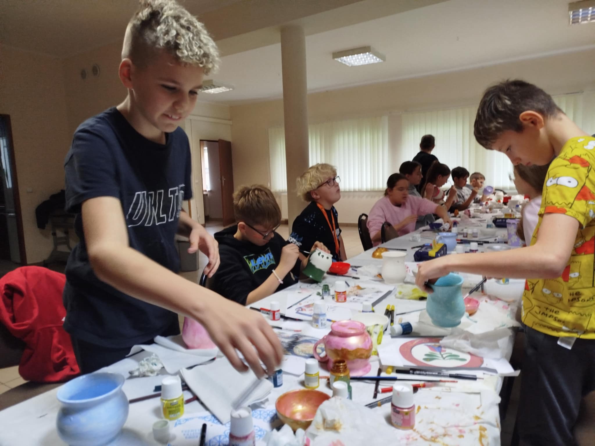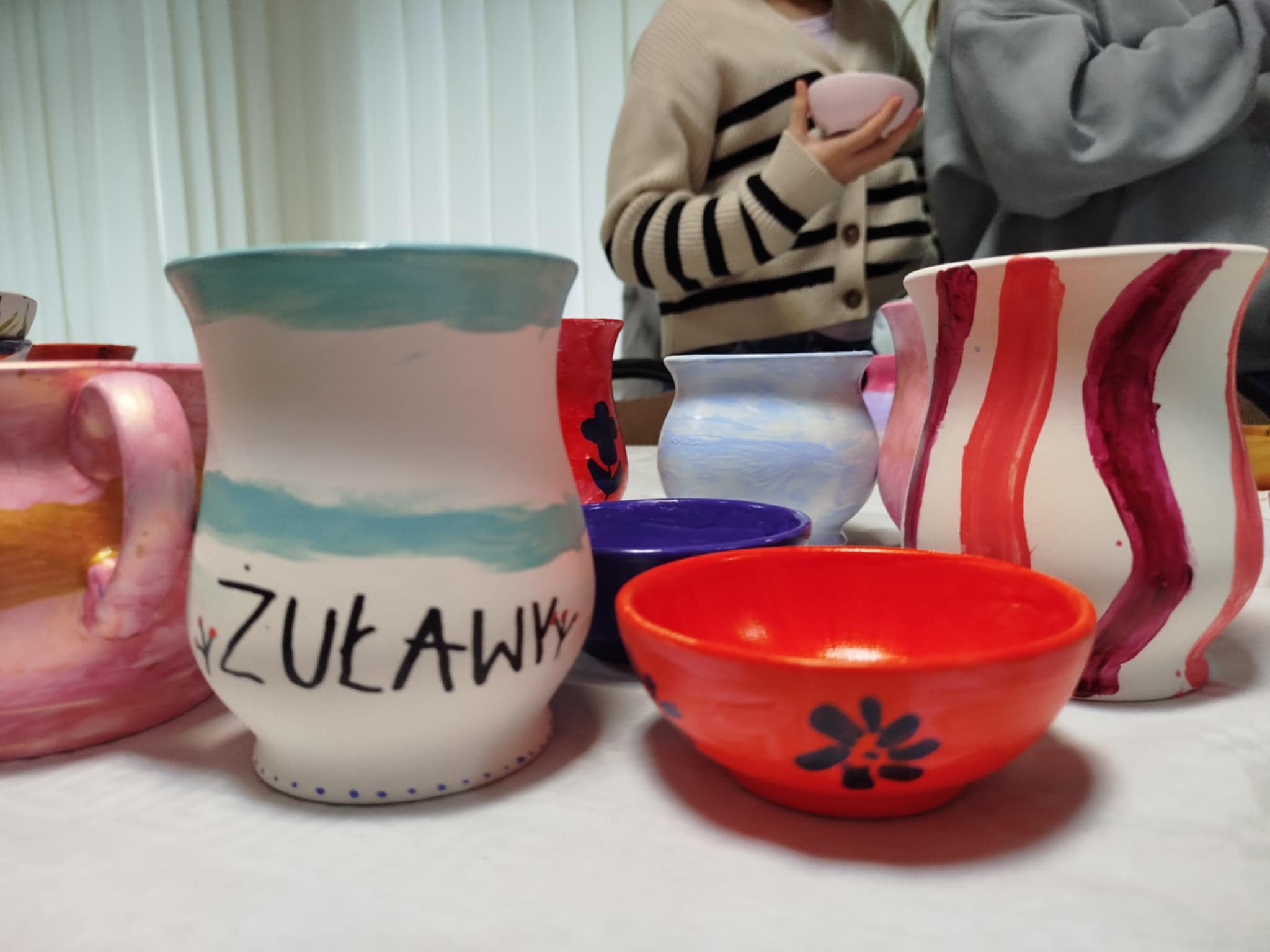 Kolejne zajęcia były poświęcone ceramice żuławskiej – powstały gliniane naczynia i kafle zdobione motywami inspirowanymi lokalną ornamentyką i tradycją ludową.