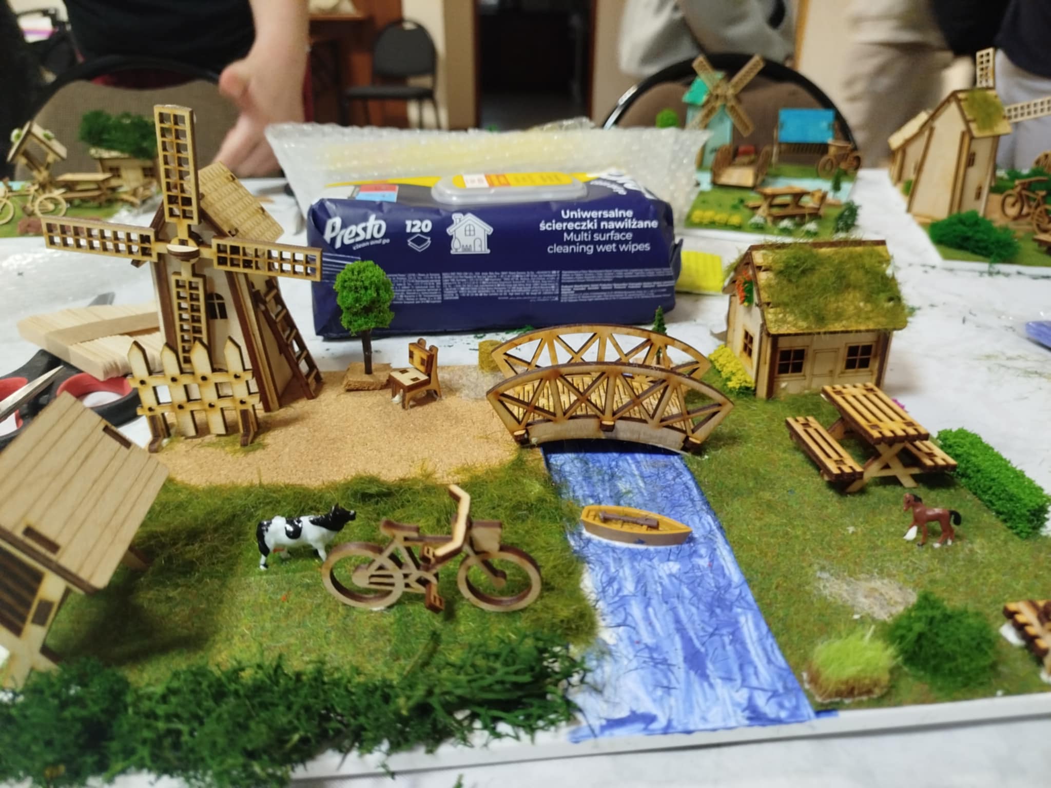 Podczas warsztatów rękodzielniczych uczestnicy tworzyli makiety Żuław, przedstawiające charakterystyczne elementy regionu – krajobrazy, gospodarstwa rolne, wiatraki oraz domy podcieniowe będące jednym z najbardziej rozpoznawalnych symboli żuławskiej architektury.