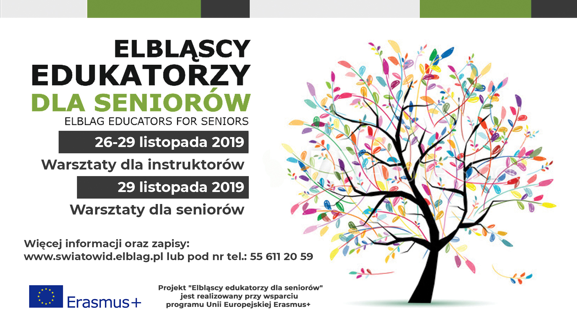 Projekt „Elbląscy edukatorzy dla seniorów” rozpoczął się w grudniu 2018 roku i potrwa do listopada 2020 roku. Animatorzy z Polski wymienią się doświadczeniami w zakresie pracy z seniorami, zdobędą doświadczenie działając w międzynarodowym zespole i poznają nowe trendy w edukacji senioralnej. Udział w projekcie da im podstawę do poszerzenia oferty edukacyjnej dla seniorów.