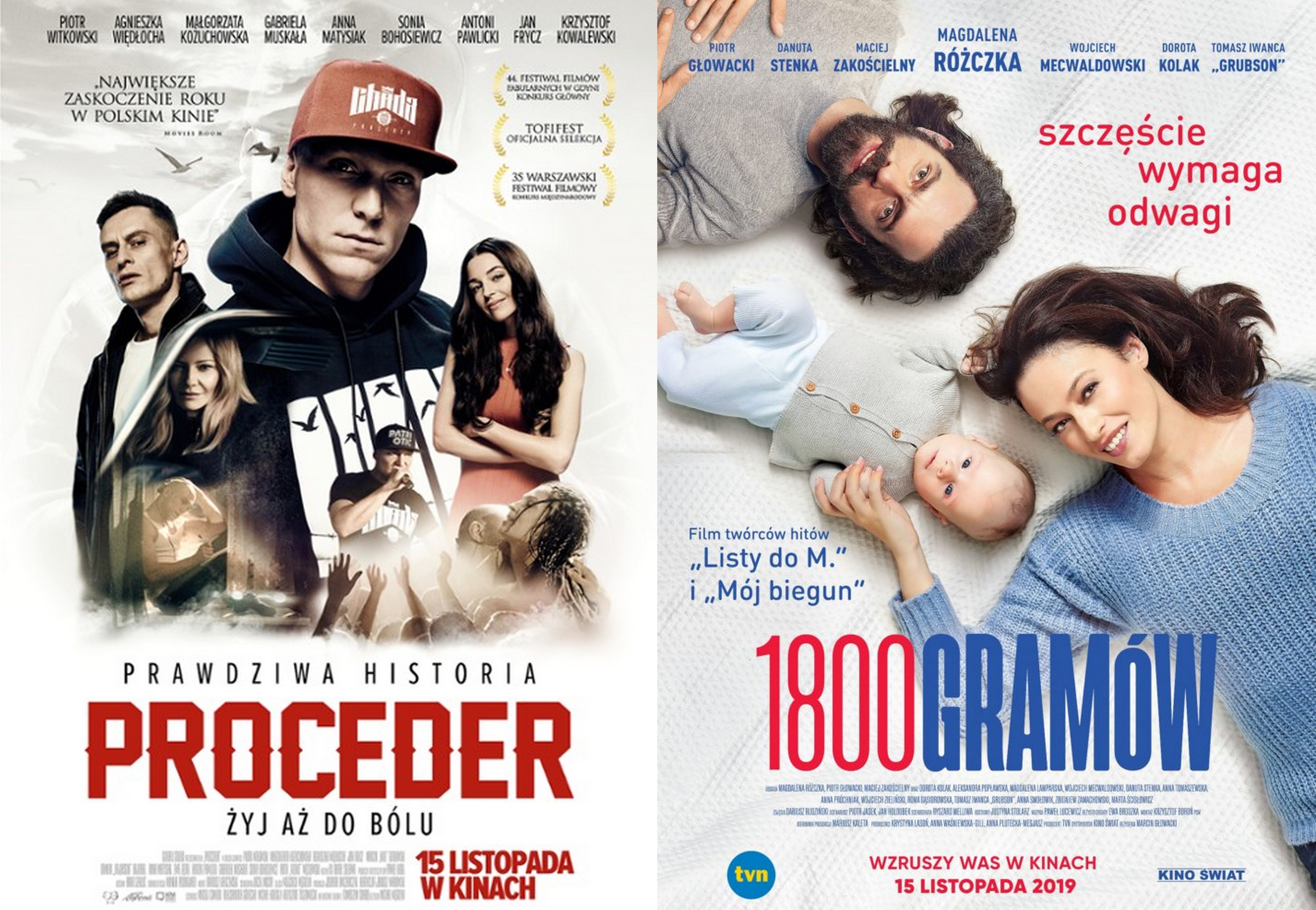 Dwa nowe filmy: Proceder i 1800 gramów zobaczyć będziemy mogli w Kinie Światowid w tym tygodniu. Od 15 do 28 listopada kino Światowid zaprasza na film "Proceder". To jedna z najbardziej oczekiwanych polskich produkcji w 2019 roku.Proceder” to poruszająca historia rapera Tomasza Chady – chłopaka z blokowisk, z duszą poety i darem do wpadania w poważne kłopoty. Prawdziwy i szczery do bólu w swoich tekstach, Chada ginie w niewyjaśnionych okolicznościach zostawiając zszokowanych fanów i dziewczynę, którą kochał. Muzyka była całym jego życiem - pasją i światem, w który uciekał, gdy rzeczywistość nie miała mu zbyt wiele do zaoferowania.W rolach głównych wystąpili: Piotr Witkowski, Kali, Antoni Pawlicki, Agnieszka Więdłocha, Małgorzata Kożuchowska, Jan Frycz, Sonia Bohosiewicz, Gabriela Muskała, Ewa Ziętek, Piotr Głowacki, Anna Matysiak. Film wyreżyserował Michał Węgrzyn, a autorem zdjęć jest Wojciech Węgrzyn.Reżyseria: Michał Węgrzyn, Obsada: Piotr Witkowski, Kali, Antoni Pawlicki, Agnieszka Więdłocha, Małgorzata Kożuchowska, Jan Frycz, Sonia Bohosiewicz, Gabriela Muskała, Ewa Ziętek, Piotr Głowacki, Anna Matysiak, Produkcja: Polska 2019, Czas: 137 minOd 15 do 28 listopada kino Światowid zaprasza na film „1800 gramów”. To najnowszy filmowy projekt TVN, producenta takich hitów jak „Listy do M.” czy „Podatek od miłości”, które przed wielkimi ekranami zgromadziły łącznie imponującą liczbę blisko 10 milionów widzów! W roli głównej zobaczymy Magdalenę Różczkę, której partnerują: Piotr Głowacki, Danuta Stenka, Aleksandra Popławska, Maciej Zakościelny, Wojciech Mecwaldowski, Roma Gąsiorowska.Kraków przygotowuje się na nadejście świąt. Ewa (Magdalena Rożczka), kobieta dla której nie ma rzeczy niemożliwych, szuka nowych opiekunów dla dzieci pozbawionych rodzin. Jest wulkanem energii, potrafi wyważyć każde drzwi i nagiąć każdy przepis, aby im pomóc. Tuż przed Bożym Narodzeniem w jej życiu pojawia się niezwykła dziewczynka – Nutka, niemowlę pozostawione przez matkę. Dla jej dobra Ewa gotowa jest zrobić wszystko, nawet poświęcić siebie, swoją karierę i szansę na miłość… Nie spodziewa się, że wkrótce przez jej życie przetoczy się prawdziwa lawina emocji, na którą nie przygotowało jej nic, czego do tej pory doświadczyła. Czy bezinteresownie ratując jeden mały świat można uratować również siebie?Reżyseria: Marcin Głowacki, Obsada: Magdalena Różczka, Piotr Głowacki, Danuta Stenka, Aleksandra Popławska, Maciej Zakościelny, Wojciech Mecwaldowski, Roma Gąsiorowska, Magdalena Lamparska, Produkcja: Polska 2019, Czas: 100 minBilety na film można nabyć online lub w kasie Centrum Spotkań Europejskich Światowid. Kasa jest czynna od poniedziałku do piątku od godz. 14.30 do 20.30 (lub 15 minut przed pierwszym seansem). W soboty i niedziele od godz. 11:30 do 20:30. Więcej informacji pod numerem: (55) 611 20 56/76 lub mailowo pod adresem: kino@swiatowid.elblag.pl.