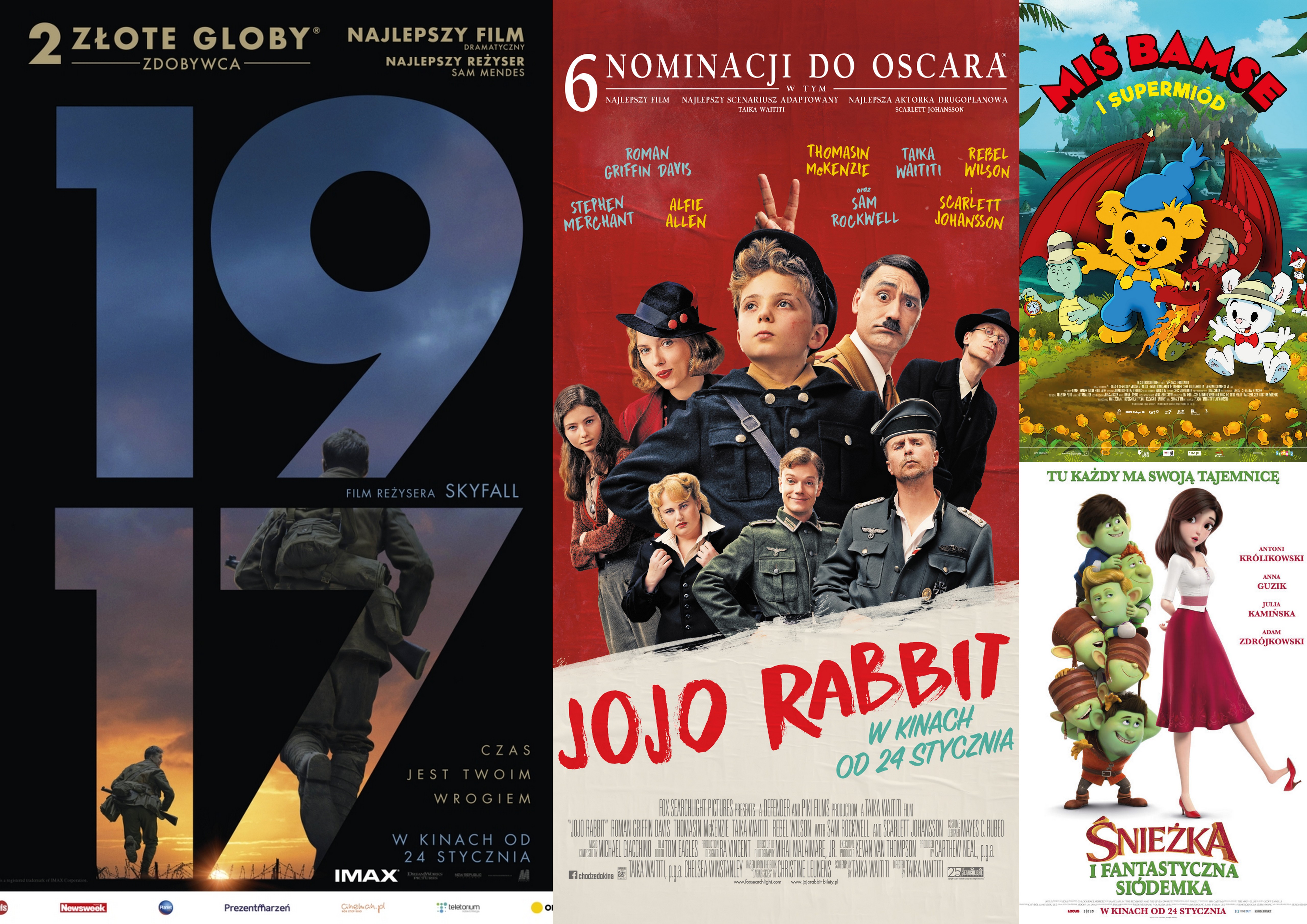 Kino Światowid ma przyjemnosc zaprosić na nowe premiery filmowe. Zapraszamy szczególnie wszystkie dzieci, do spędzenia z nami ferii zimowych, z takimi filmami jak, Jojo Rabbit, Miś Bamse i Supermiód oraz Śnieżka i fantastyczna siódemka. Starszych widzów zapraszamy na premierę 1917, filmu wojennego, pokazującego dramatyczne losy na froncie.