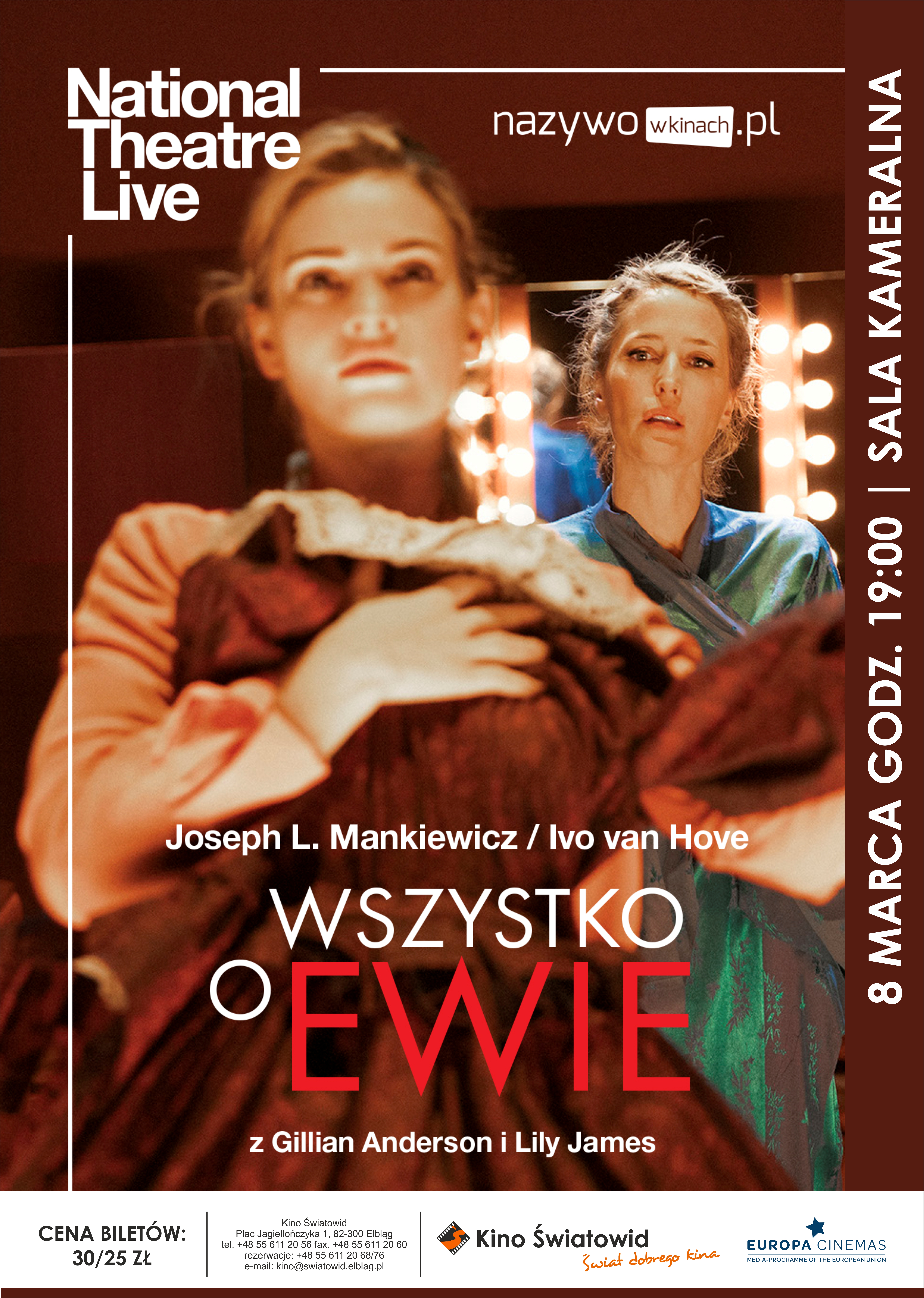 Retransmisja spektaklu „Wszystko o Ewie” z The National Theatre w Londynie, to propozycja Centrum Spotkań Europejskich „Światowid” w Elblągu, z okazji Dnia Kobiet. Ten szczególny dzień można spędzać na wiele sposobów, zapraszamy na wieczorne spotkanie z fascynującą historią o kulisach show-biznesu, zazdrości, ambicji i władzy.