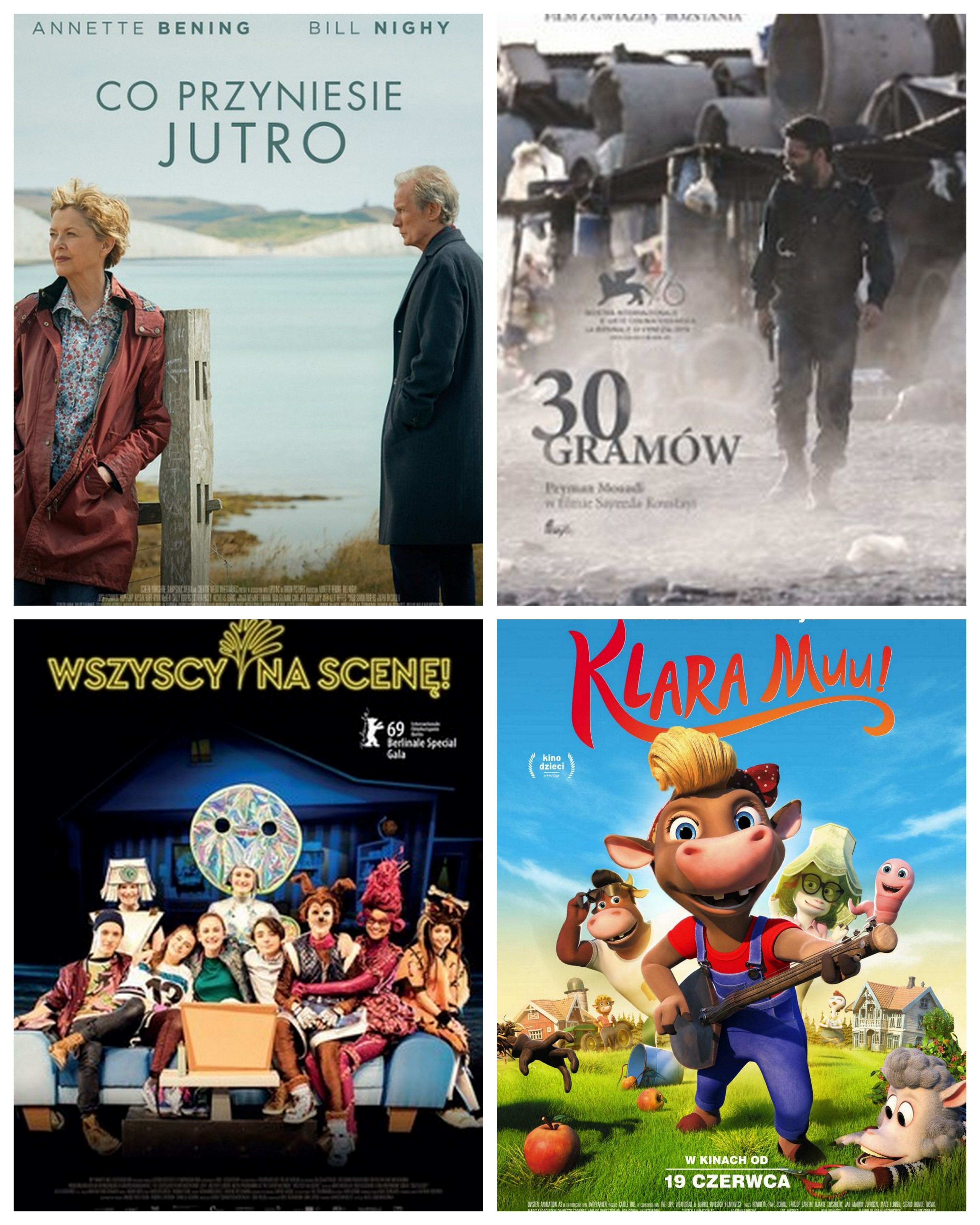 Od piątku 19 czerwca w Kinie Światowid można oglądać aż cztery nowe produkcje: „Co przyniesie jutro” - emocjonujący film z Annette Bening i Billem Nighy w rolach głównych, „30 gramów” - zdobywca Nagrody Publiczności Festiwalu w Teheranie i odkrycie Warszawskiego Festiwalu Filmowego, „Wszyscy na scenę!” - dokumentalna opowieść o pięciorgu dzieciakach, które postanowiły spełnić swoje marzenia, oraz „Klara Muu!” - przesympatyczna historia dla najmłodszych widzów.