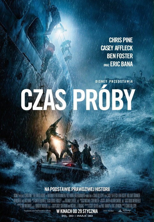 „Czas próby” to oparty na faktach, trzymający w napięciu thriller przedstawiający historię heroicznej akcji ratunkowej u wybrzeży Nowej Anglii. W rolach głównych zobaczymy Chrisa Pine’a („Star Trek”) i Caseya Afflecka („Interstellar”). „Czas próby” w Kinie Światowid od 29 stycznia do 11 lutego.