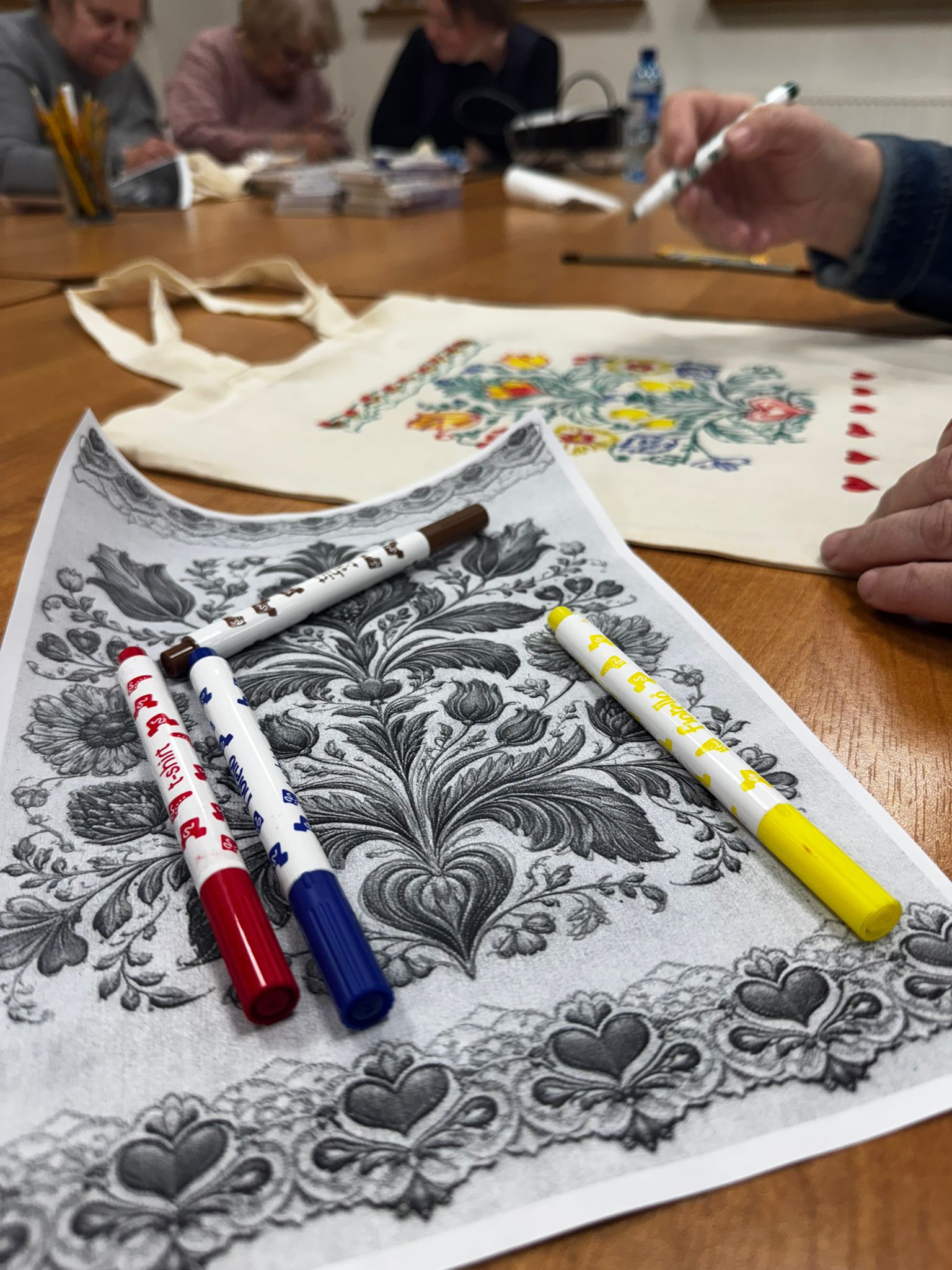 Podczas zajęć odbył się miniwykład o sztucznej inteligencji w kulturze – jej możliwościach, ale też zagrożeniach. Następnie uczestnicy poznali symbole Warmii i tworzyli autorskie grafiki oraz logotypy inspirowane regionem. Nie zabrakło baranków, bocianów, czerwonej cegły, niebieskich wód, zielonych łąk, Mikołaja Kopernika oraz motywów haftu warmińskiego. Gotowe projekty zostały przeniesione na ekologiczne torby, tworząc niepowtarzalne pamiątki.
