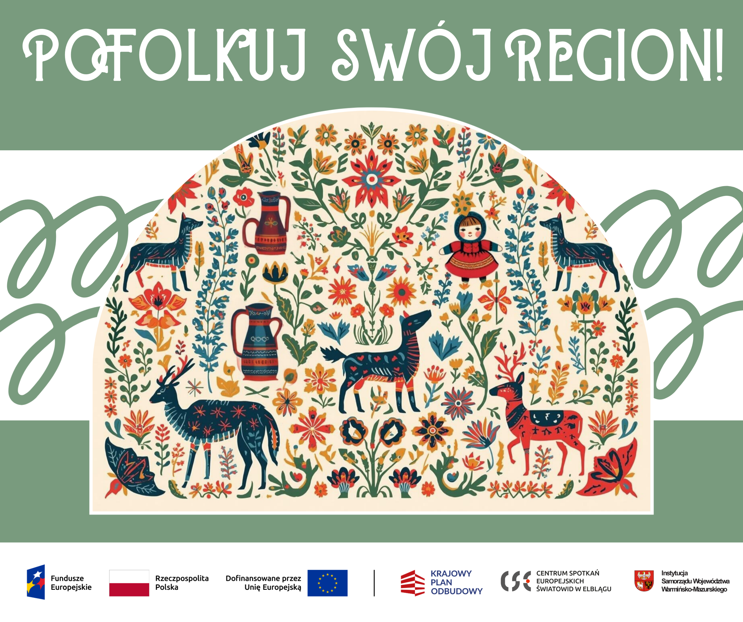 Celem projektu jest twórcze ożywienie i upowszechnienie dziedzictwa kulturowego Warmii, Mazur, Powiśla, Żuław i Ziemi Lubawskiej w nowoczesnej formie przy zaangażowaniu społeczności w jego współczesną interpretację. Mieszkańcy pięciu małych miejscowości odkryją i stworzą unikalne skarby swoich regionów (obiekty materialne i cyfrowe inspirowane tradycjami i sztuką ludową), które trafią do Folk Kapsuł - innowacyjnych mobilnych zestawów edukacyjnych. Efekty zostaną udostępnione online oraz zaprezentowane podczas finałowego wydarzenia - Festiwalu FolkON!, w ramach którego odbędzie się m.in. konferencja, warsztaty edukacyjne i rękodzielnicze, wystawy multimedialne, pokazy artystyczne oraz Szarady ludowe inspirowane kulturą ludową.