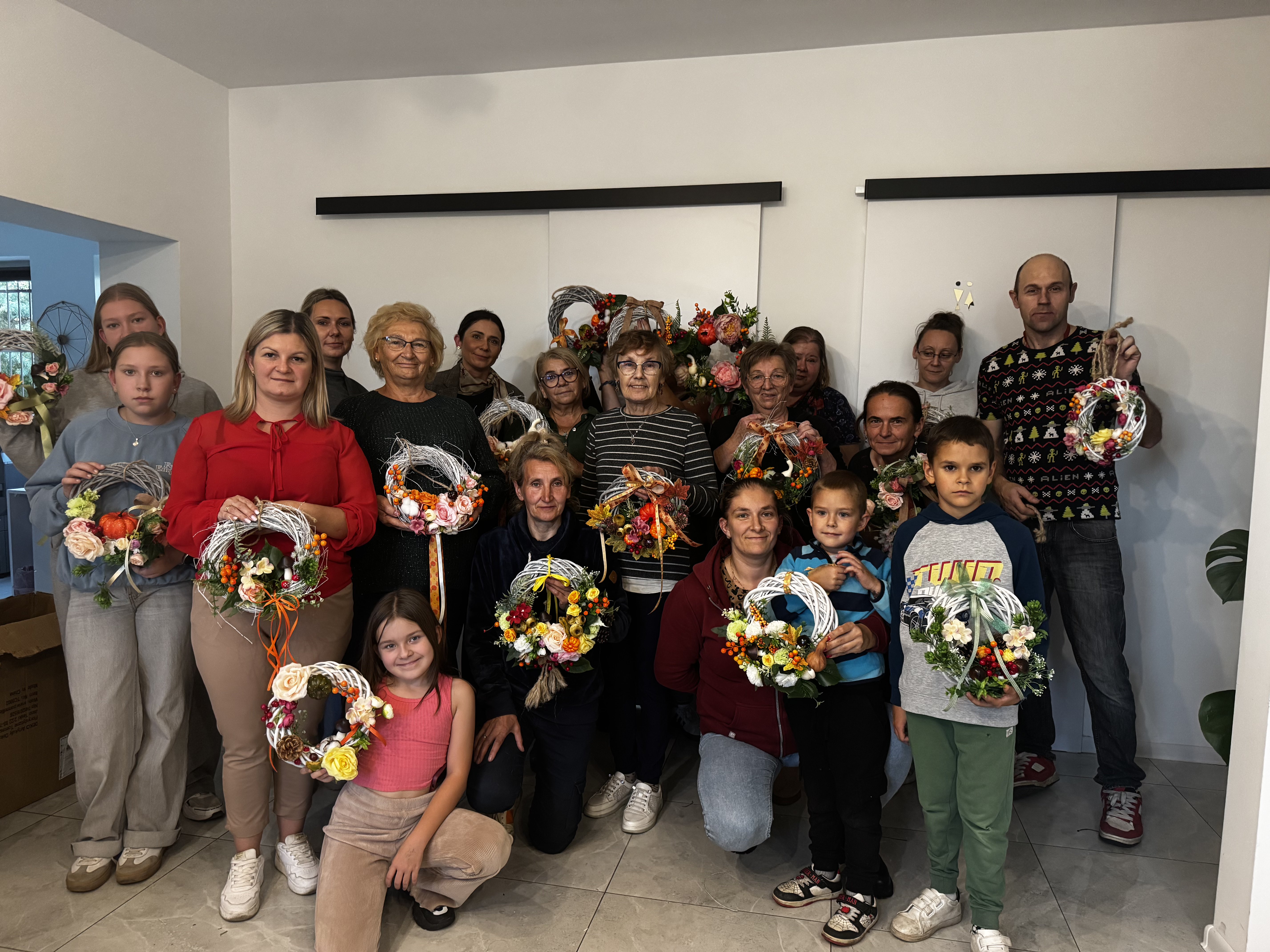 Uczestnicy, korzystając z ekologicznych materiałów, stworzyli własnoręcznie dekoracyjne wianki, które ozdobią ich domy i drzwi, stając się nie tylko piękną ozdobą, ale też symbolem wdzięczności, więzi międzypokoleniowej i szacunku dla tradycji rolniczej regionu.