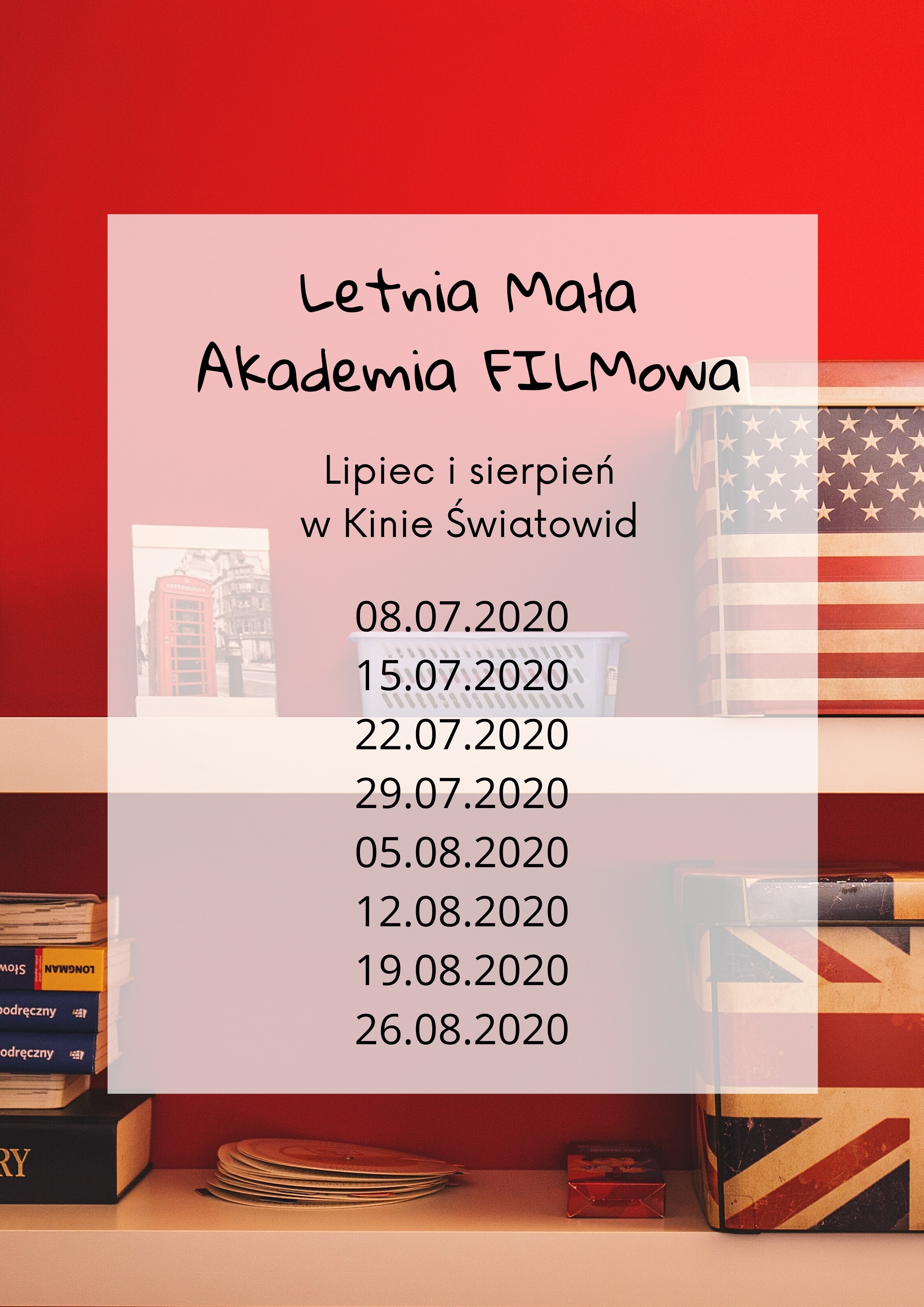 Kino Światowid serdecznie zaprasza na zajęcia Letniej Małej Akademii Filmowej. W tym roku, oprócz seansów najnowszych kinowych premier dla najmłodszych, dzieci będą miały okazję, w formie zabawy poznawać angielskie słownictwo dotyczące zagadnień filmowych.Zajęcia startują 8 lipca 2020 i odbywać się będą w każdą środę, do końca sierpnia, a dedykowane są dzieciom od 7 do 12 roku życia. Grupy liczyć będą maksymalnie 14 osób.Jedno spotkanie, czyli nauka filmowego języka angielskiego oraz seans filmowy to koszt 30 zł.W repertuarze znajdą się takie nowości kina animowanego i familijnego jak „Czworo dzieci i coś” czy „Turu. W pogoni za sławą”.Zapisy prosimy kierować na adres mailowy: kino@swiatowid.elblag.pl