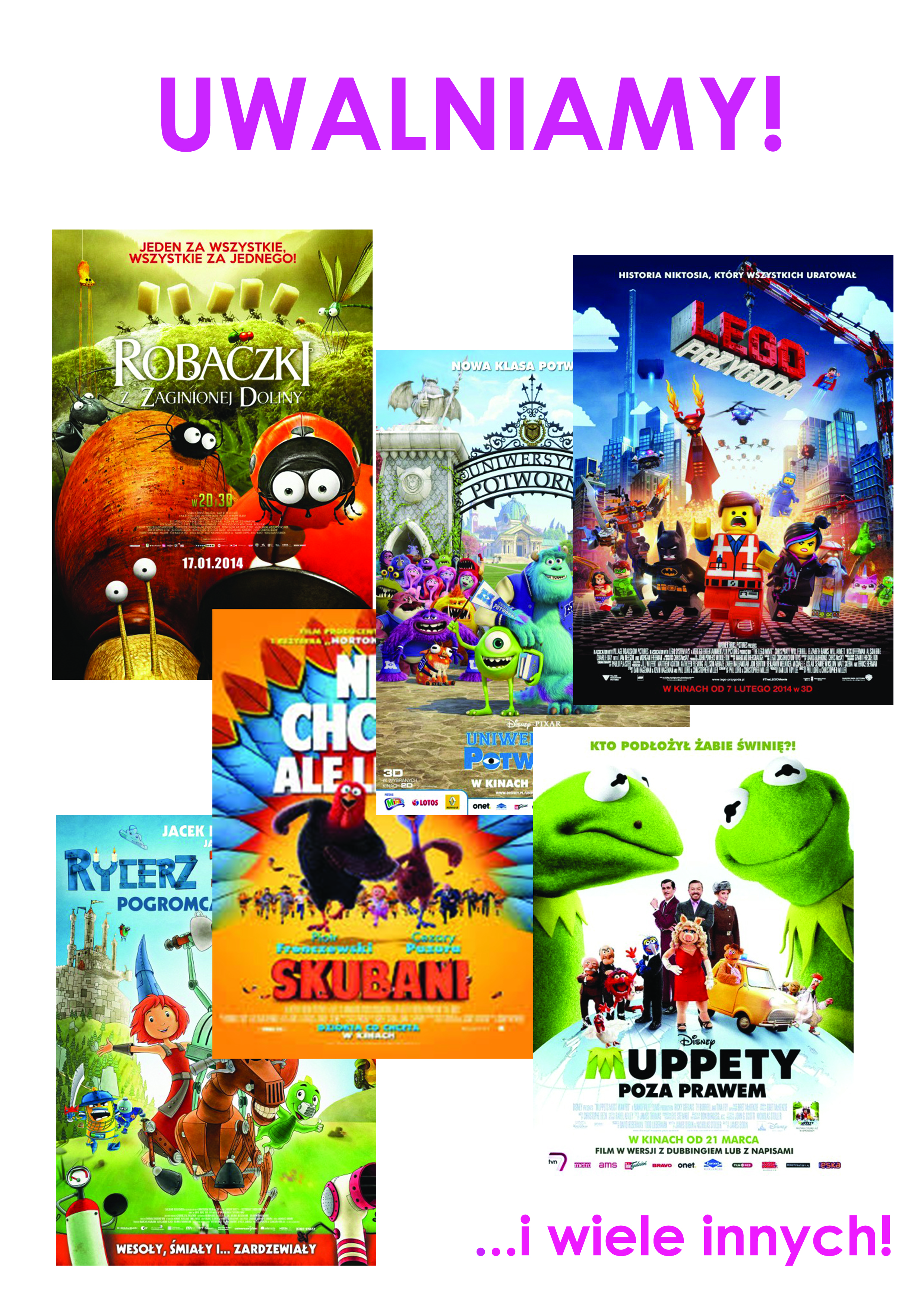 Z okazji Dnia Dziecka Kino Światowid uwalnia plakaty do filmów dla dzieci. Przy zakupie biletu w dniach od 31 maja do 5 czerwca* na projekcję filmu dla dzieci, będzie można wybrać plakat. Idealny do dziecięcego pokoju.