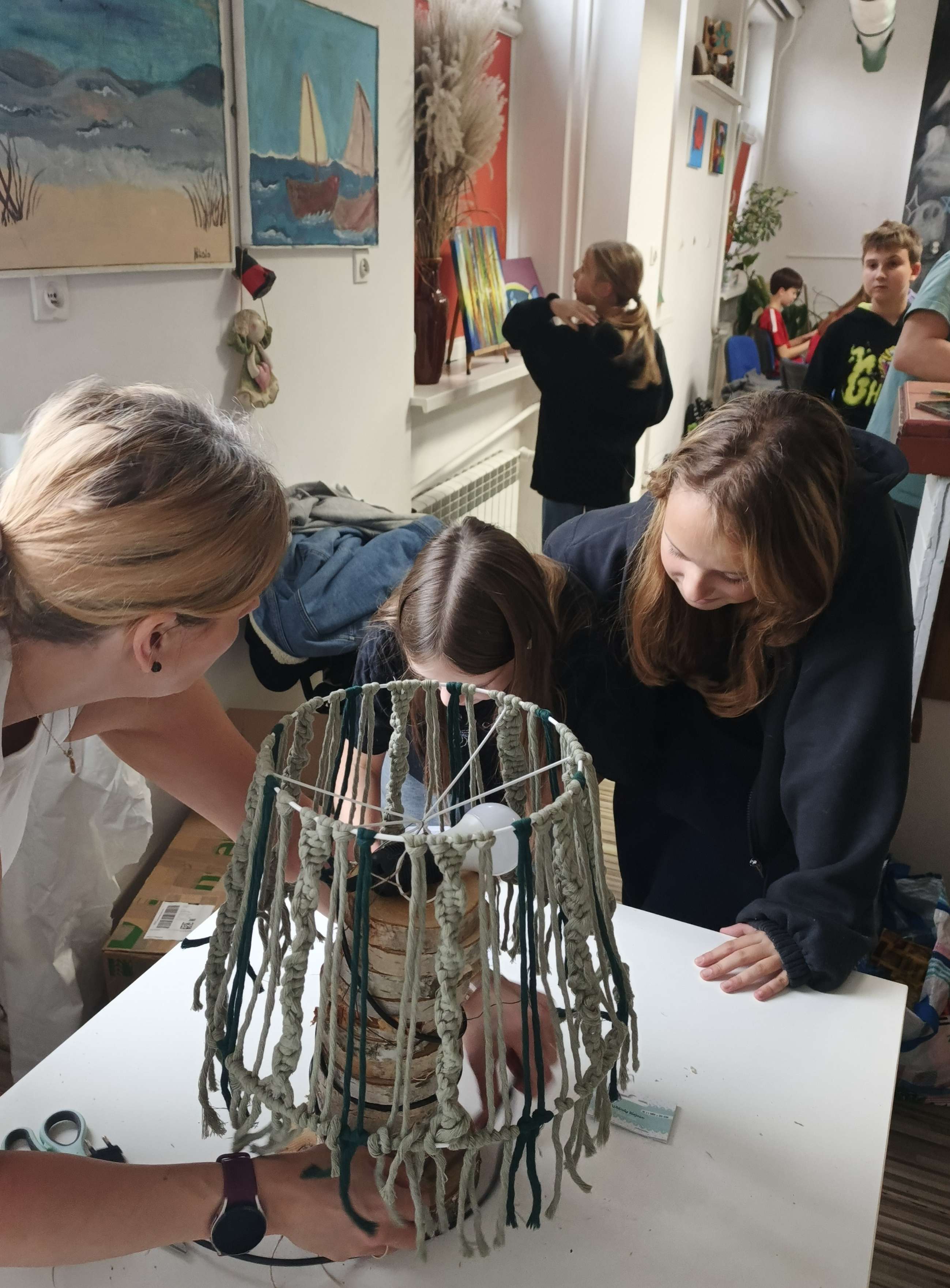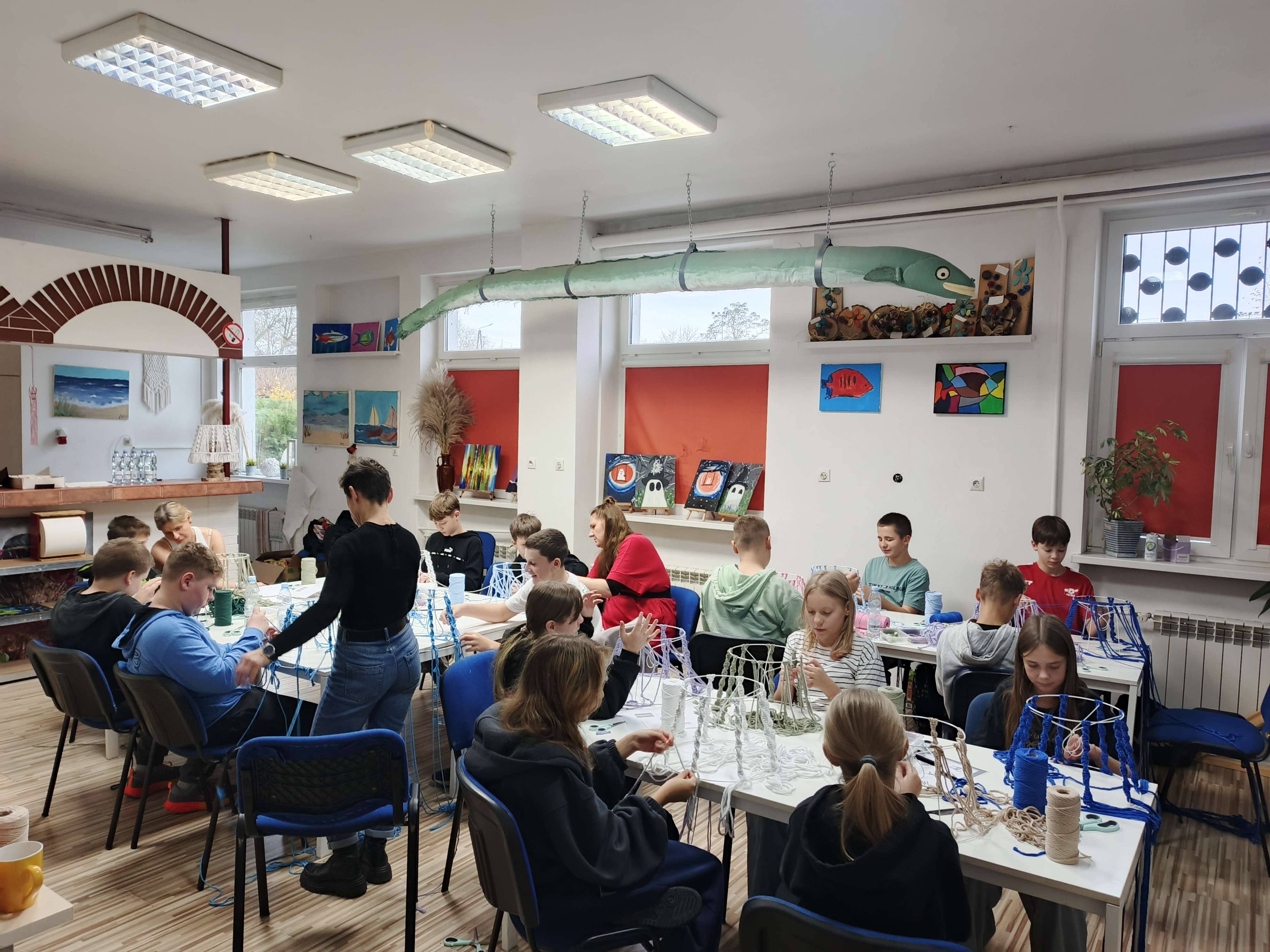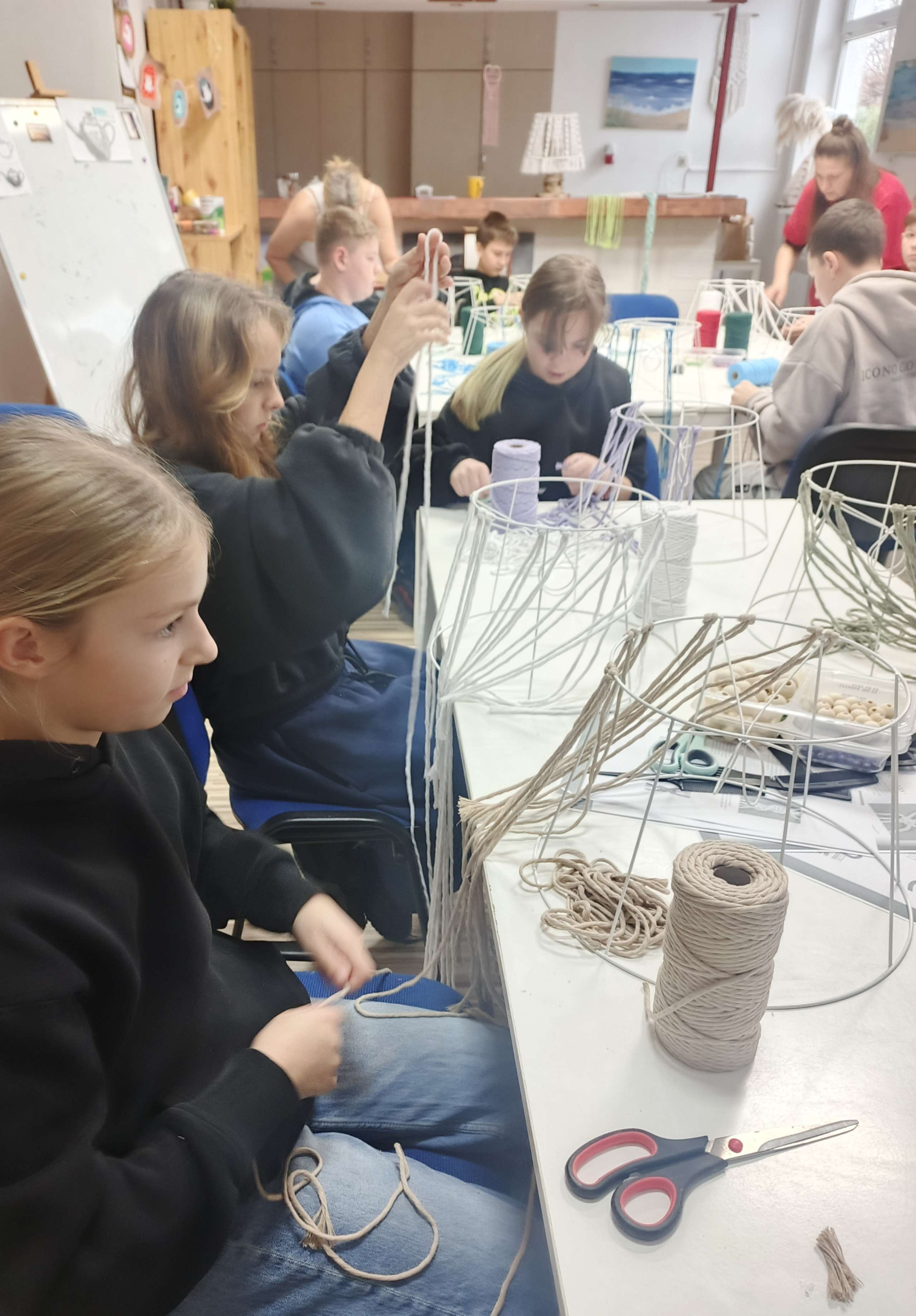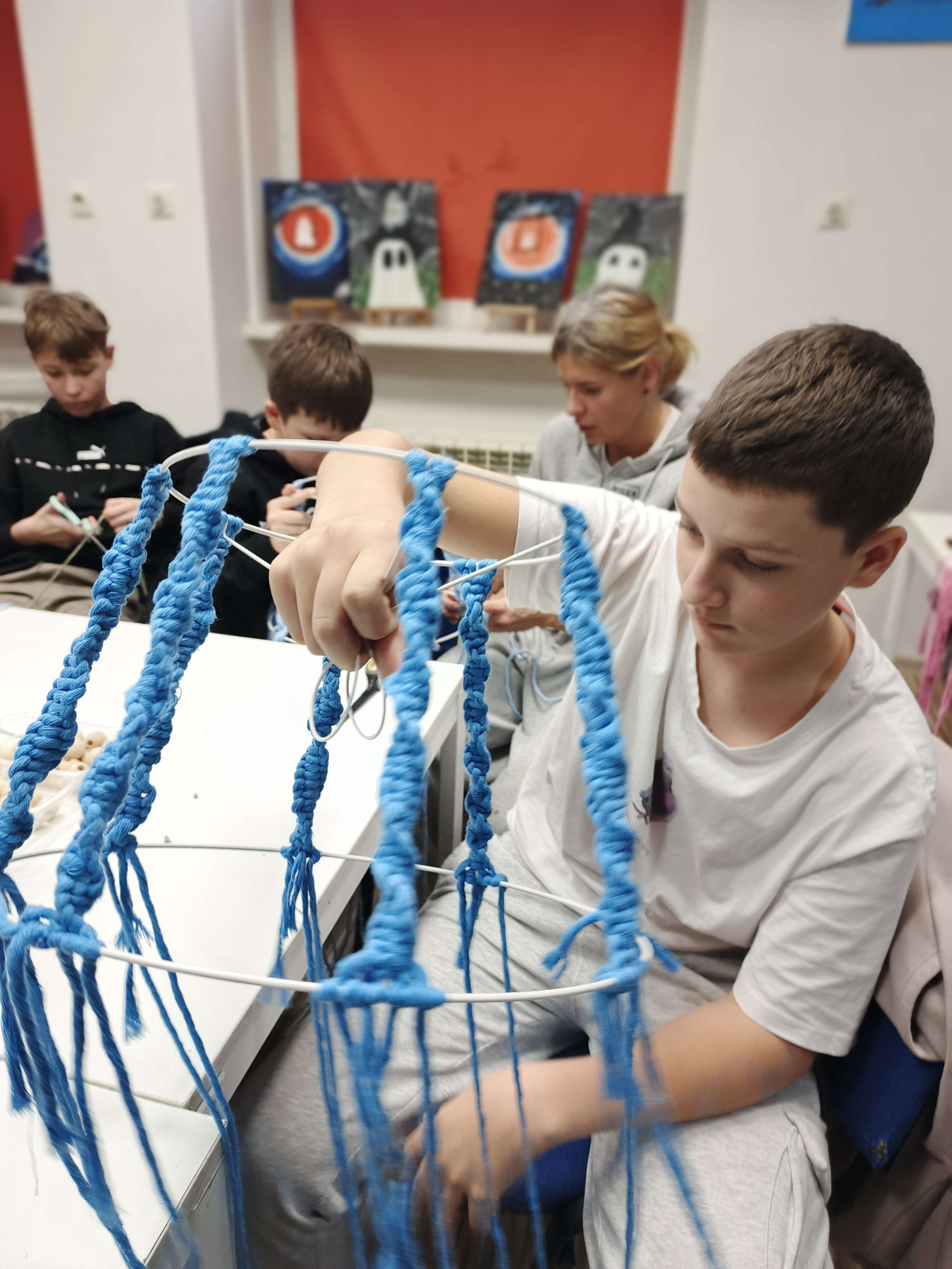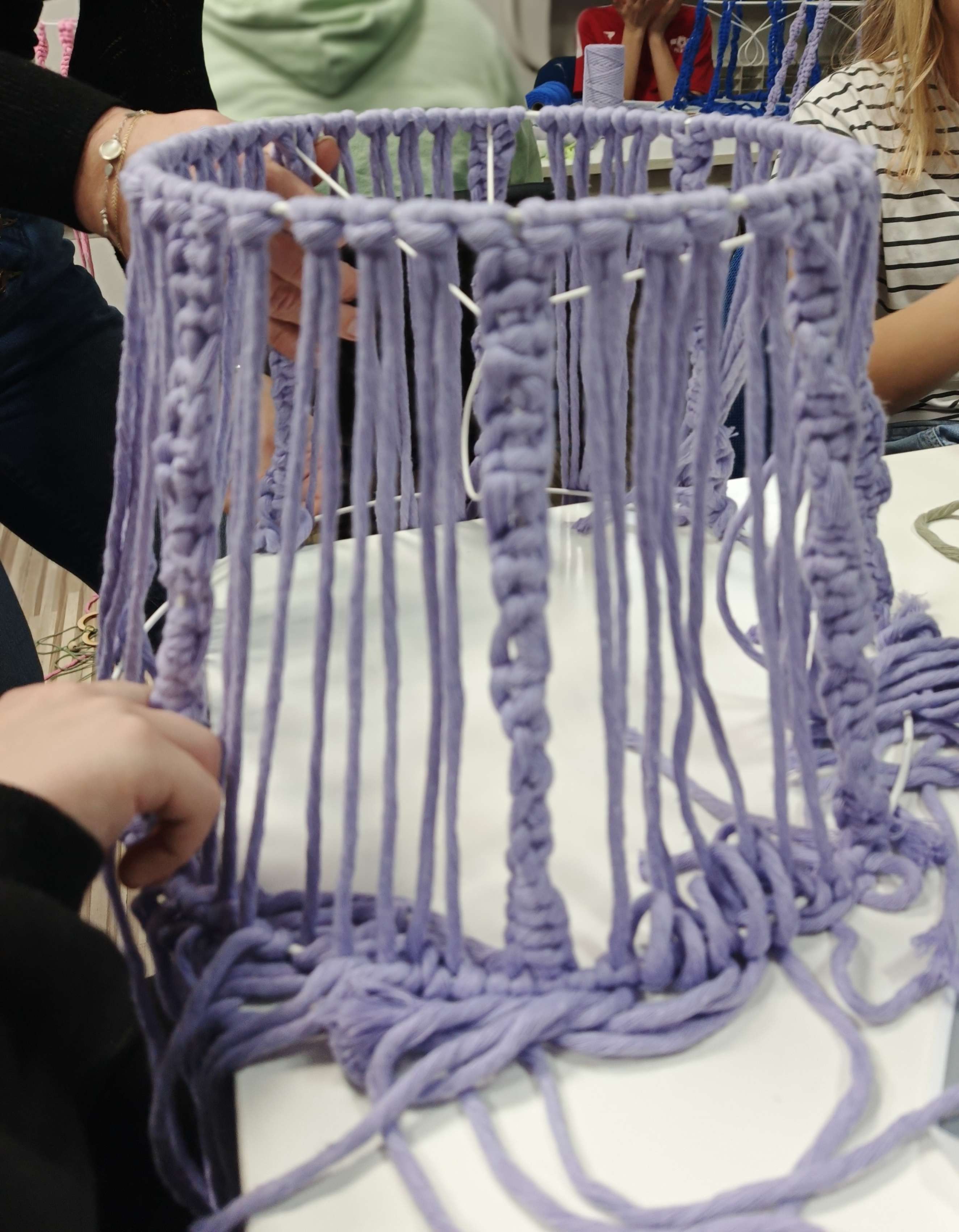 Na tym sprincie uczestnicy dowiedzieli się czym właściwie jest makrama, kiedy rozkwitła w Polsce i jakie miejsce zajmuje w tradycji ludowej. Ale przede wszystkim sami mogli przepaść w barwnych splotach makramowych.